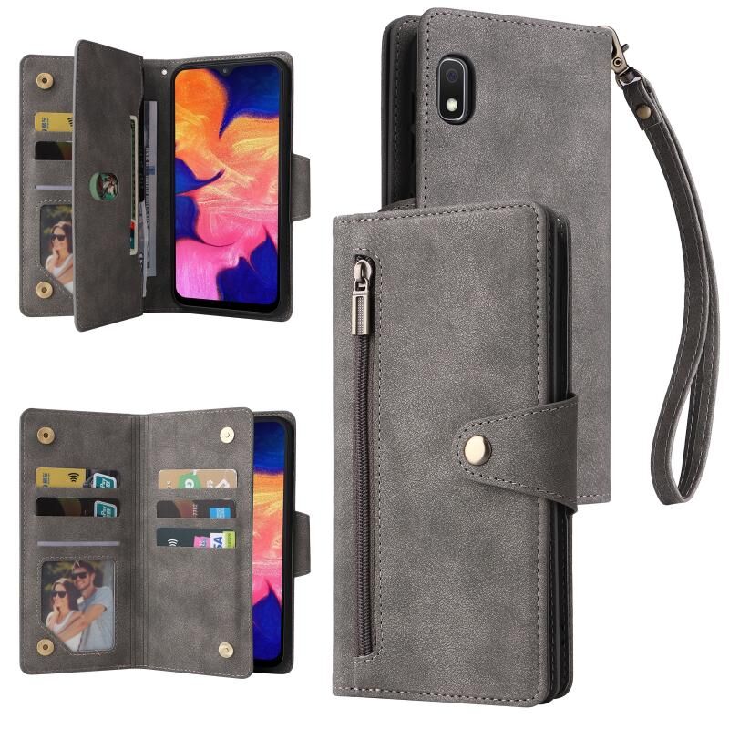 Για Samsung Galaxy A10 Rivet πόρπη 9 κάρτες τρεις φορές δερμάτινη θήκη τηλεφώνου (γκρι)