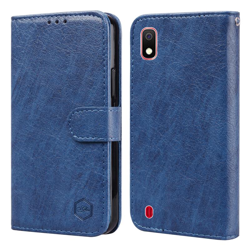 For Samsung Galaxy A10 Skin Feeling Oil Leather Texture PU + TPU Phone Case(Dark Blue)