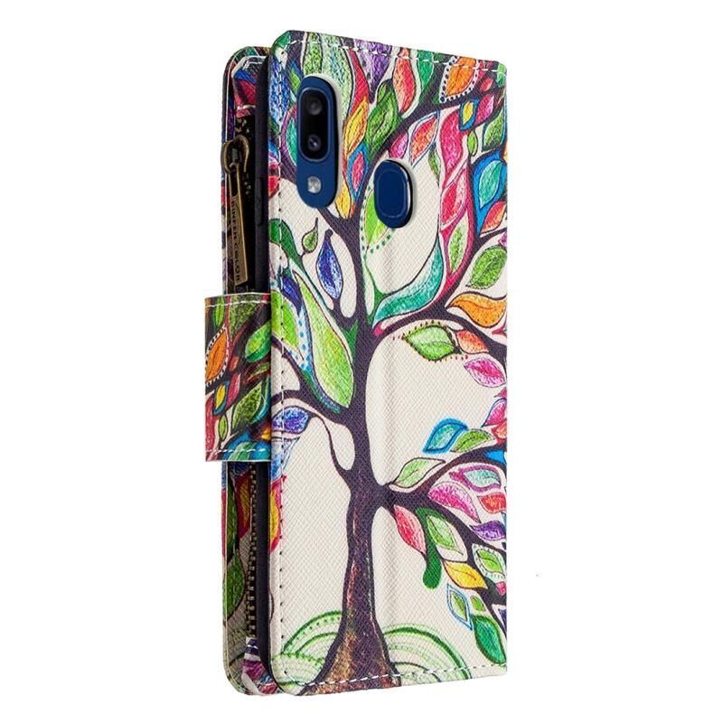 Θήκη δέρματος οριζόντιας αναδίπλωσης με φερμουάρ και σχέδια για Samsung Galaxy A10e/A20e, με βάση και θήκες για κάρτες & πορτοφόλι (Δέντρο)