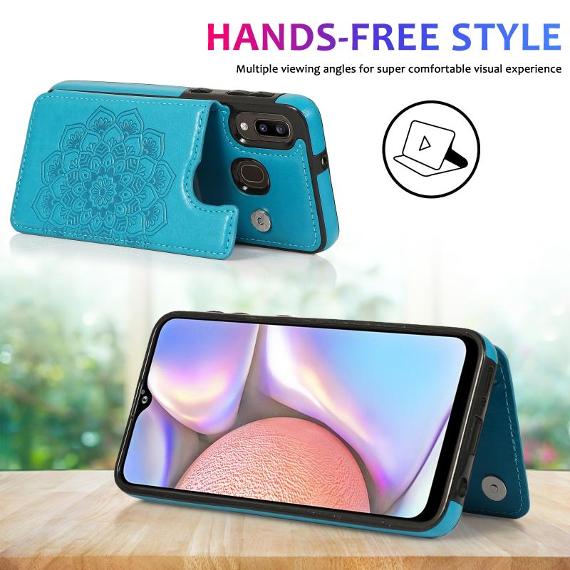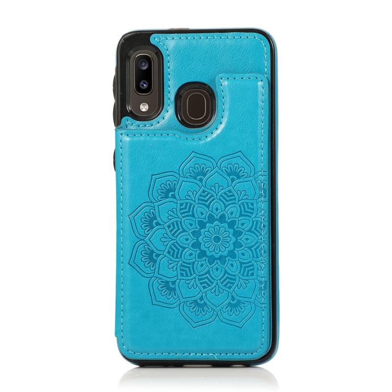 For Samsung Galaxy A10e / A20e Double Buckle Mandala Pattern PU+TPU Protective Case with Card Slots & Holder & Photo Frame(Blue)