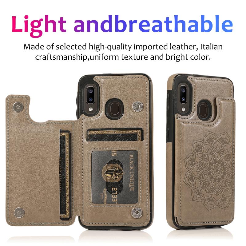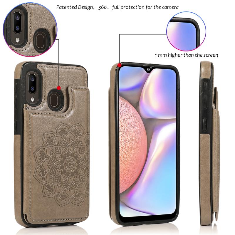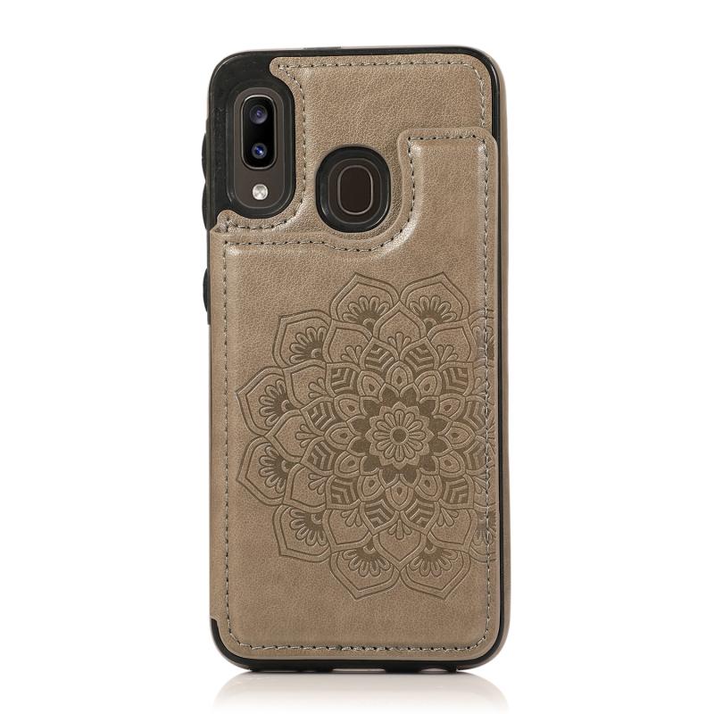 For Samsung Galaxy A10e / A20e Double Buckle Mandala Pattern PU+TPU Protective Case with Card Slots & Holder & Photo Frame(Grey)