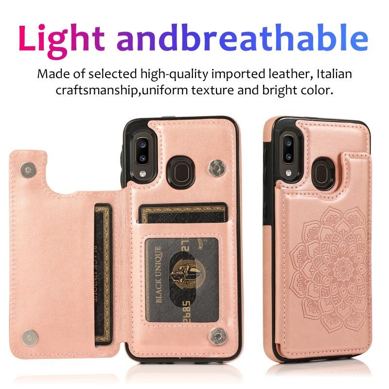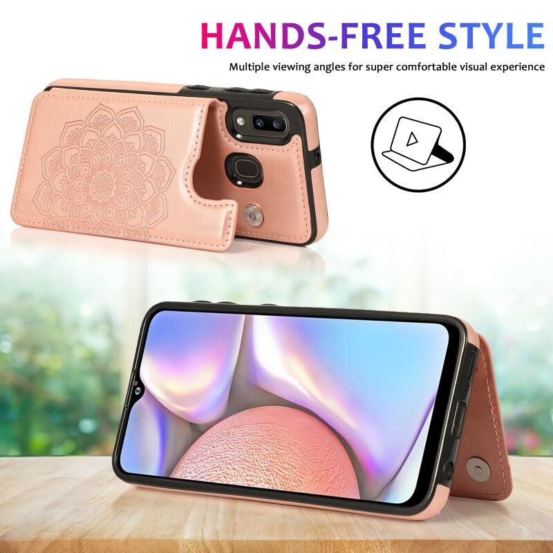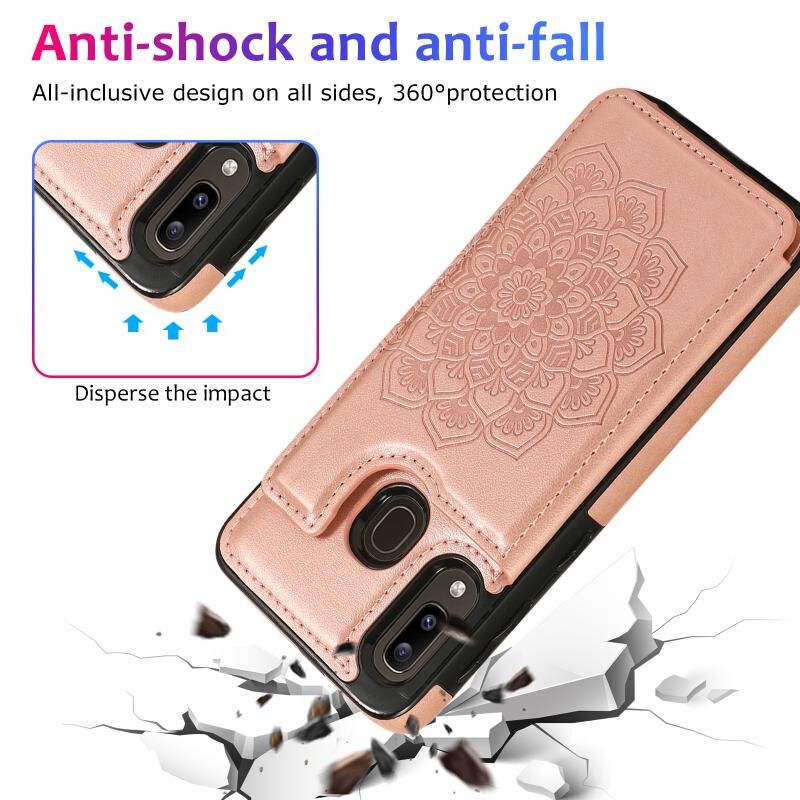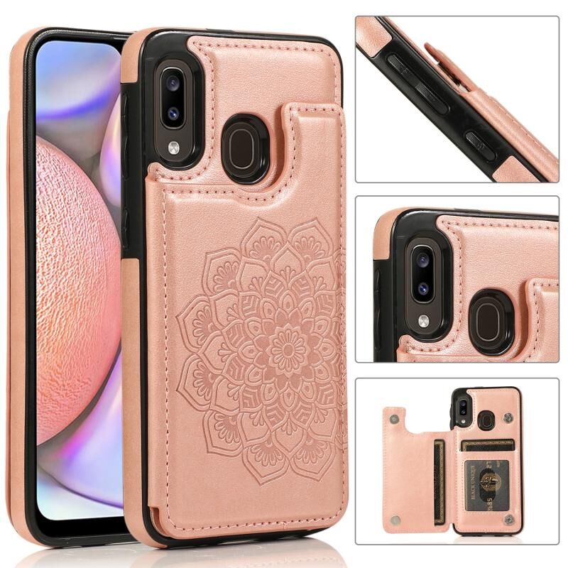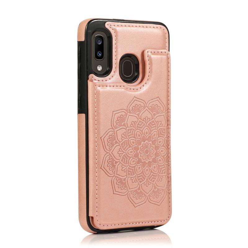 Θήκη προστασίας για Samsung Galaxy A10e / A20e με διπλή αγκράφα, σχέδιο Mandala από PU+TPU με υποδοχές καρτών & βάση στήριξης & κορνίζα φωτογραφιών (Ροζ χρυσός)
