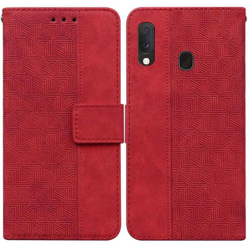 Για Samsung Galaxy A10e / A20e Γεωμετρική ανάγλυφη δερμάτινη θήκη τηλεφώνου (κόκκινο)
