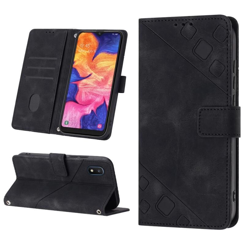 Για Samsung Galaxy A10e / A20e Skin-feel ανάγλυφη δερμάτινη θήκη τηλεφώνου (μαύρο)