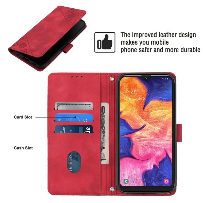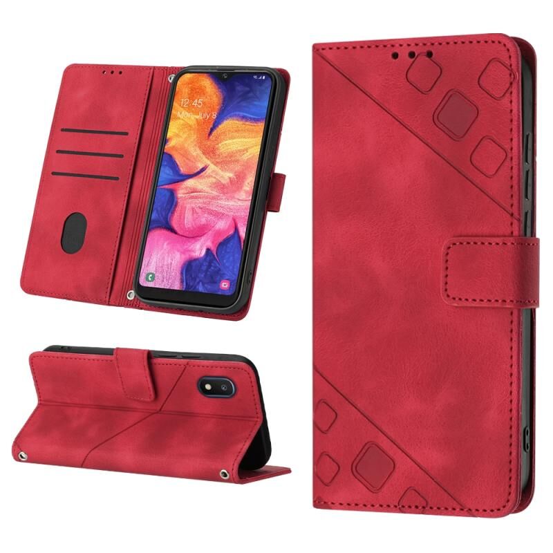 Για Samsung Galaxy A10e / A20e Skin-feel ανάγλυφη δερμάτινη θήκη τηλεφώνου (κόκκινο)