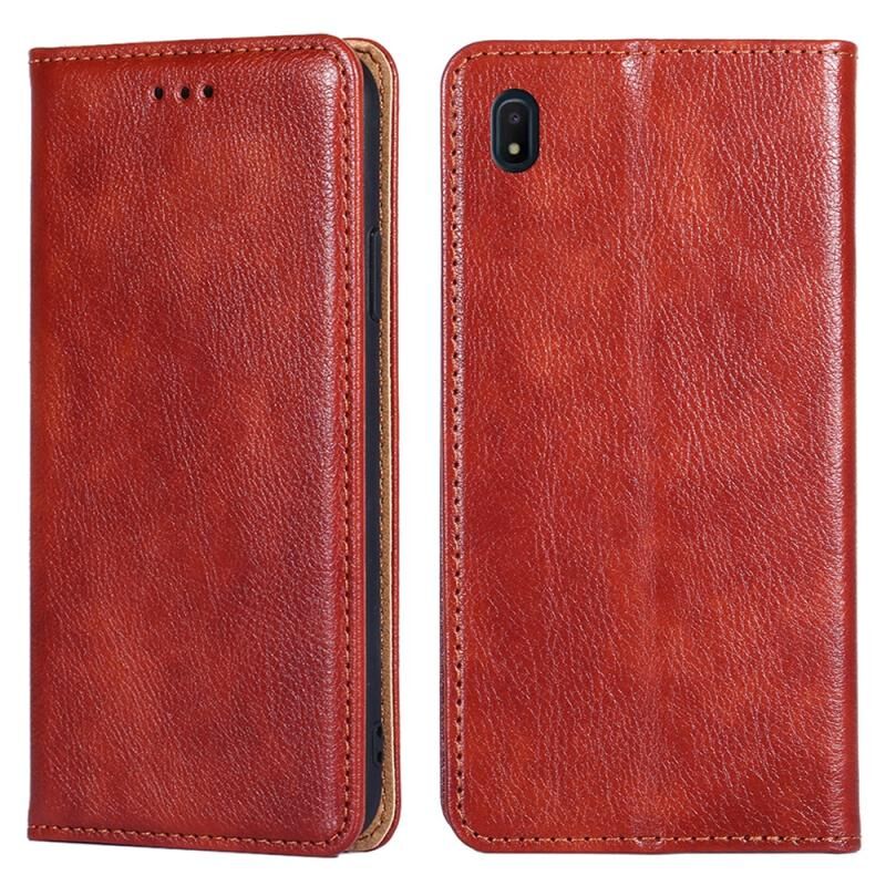 Για Samsung Galaxy A10e PU + TPU γυαλιστερό λάδι στερεό χρώμα μαγνητική οριζόντια Flip δερμάτινη θήκη με υποδοχή & υποδοχή για κάρτες & πορτοφόλι (καφέ)