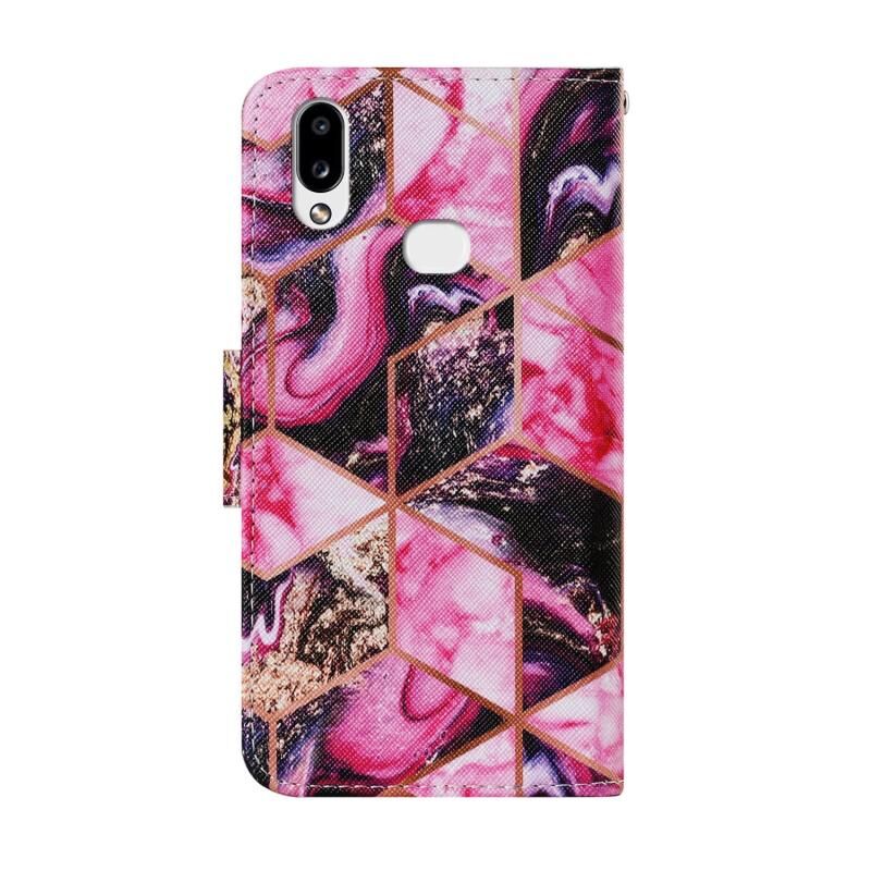 Θήκη Samsung Galaxy A10s με πολύχρωμο σχέδιο, οριζόντια αναδιπλούμενη από δερματίνη PU με βάση στήριξης, θήκες για κάρτες, πορτοφόλι & λουρί (Μωβ Μάρμαρο)