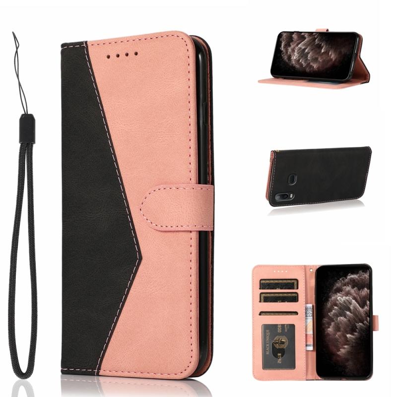 Θήκη τηλεφώνου Samsung Galaxy A10s από δέρμα με ραφές σε δύο χρώματα (Καφέ Κόκκινο)
