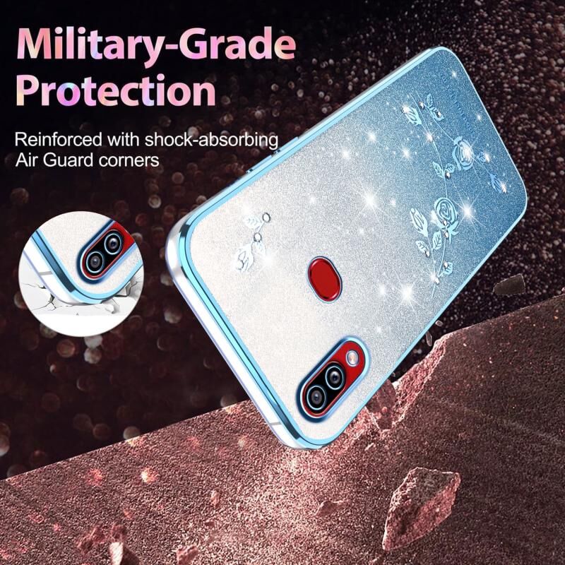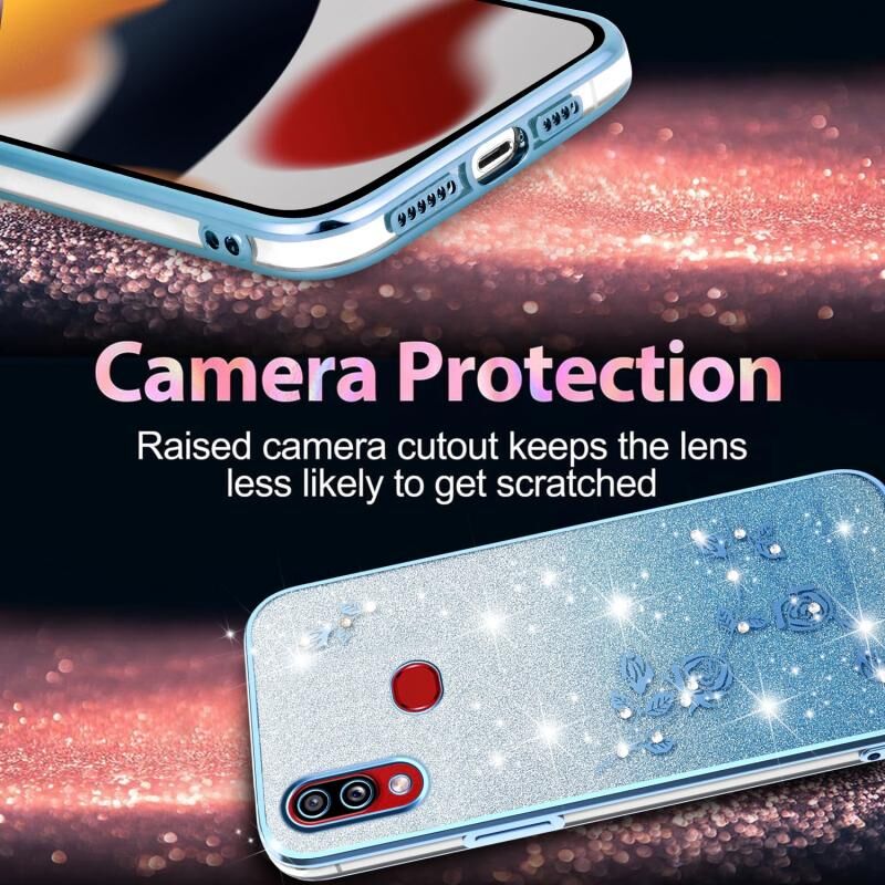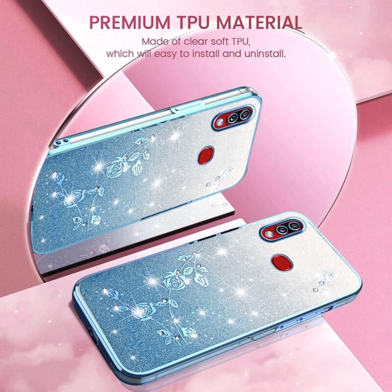 Θήκη τηλεφώνου για Samsung Galaxy A10s με διαβαθμισμένη λάμψη, λουλούδια και πλήρη κάλυψη (Μπλε)