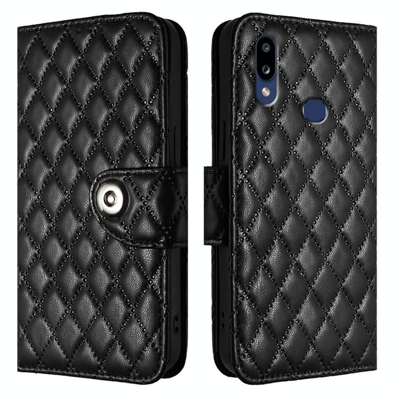 Για Samsung Galaxy A10s / M01s Ρομβική υφή Flip δερμάτινη θήκη τηλεφώνου με κορδόνι (μαύρο)