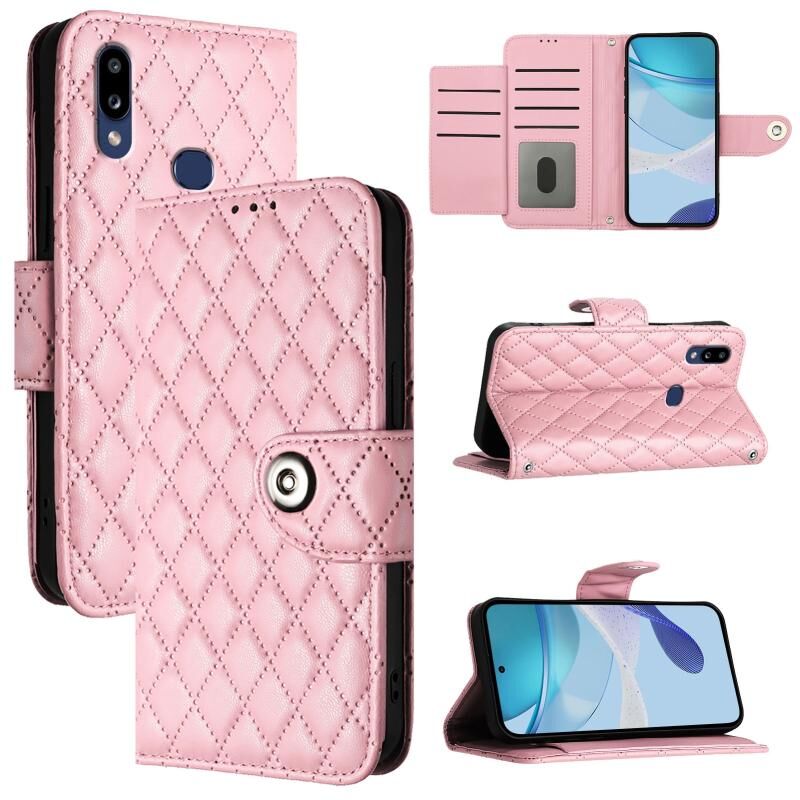Για Samsung Galaxy A10s / M01s Ρομβική υφή Flip δερμάτινη θήκη τηλεφώνου με κορδόνι (ροζ)