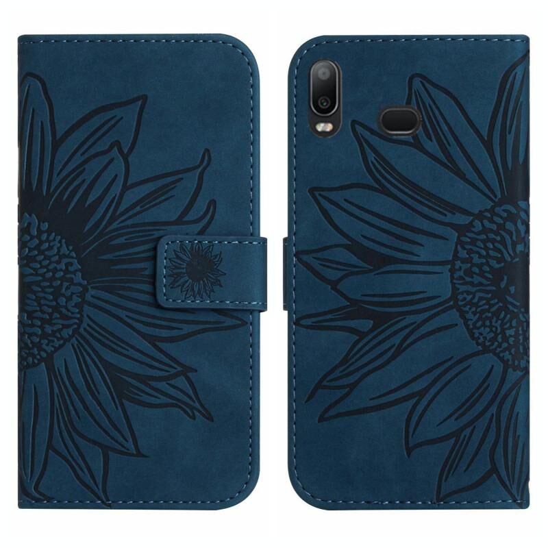 Για Samsung Galaxy A10S / M01S Skin Feel Sun Flower μοτίβο Flip δέρμα τηλέφωνο υπόθεση με κορδόνι (Inky Blue)