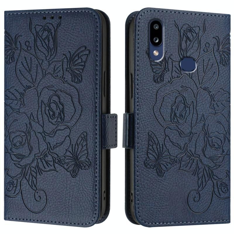 Για Samsung Galaxy A10s / M10s ανάγλυφο Rose RFID Anti-theft Δερμάτινη θήκη τηλεφώνου (σκούρο μπλε)