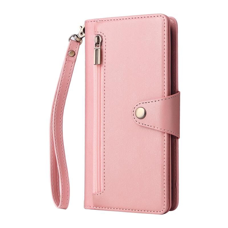 Για Samsung Galaxy A10s Rivet πόρπη 9 κάρτες τρεις φορές δερμάτινη θήκη τηλεφώνου (Ροζ χρυσός)