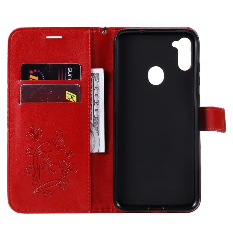 Θήκη Samsung Galaxy A11 3D Πεταλούδες, Δερμάτινη Οριζόντια με Αναγλυφία, με Θήκη & Υποδοχή Κάρτας & Πορτοφόλι (Κόκκινο)
