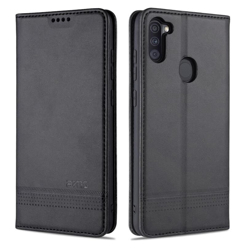 Θήκη Samsung Galaxy A11 AZNS Μαγνητική Δερμάτινη Οριζόντια με Υφή Μοσχαριού με Θήκες Καρτών & Στήριξη & Πορτοφόλι (Μαύρο) (Μαύρο)