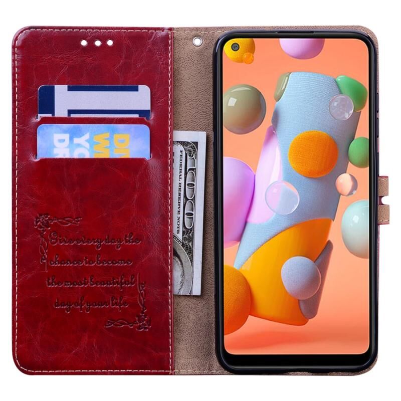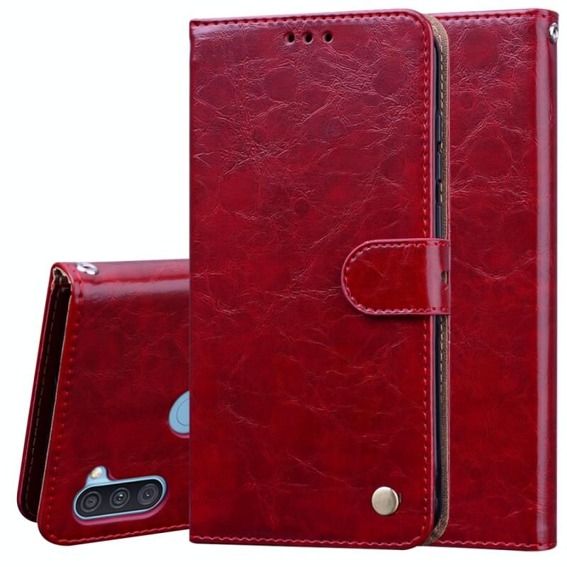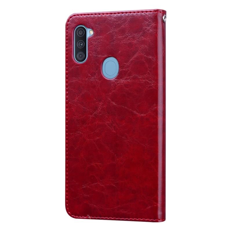 Για Samsung Galaxy A11 Business Style Oil Wax Texture Οριζόντια Flip δερμάτινη θήκη με θήκη για κάρτες & υποδοχές & πορτοφόλι (καφέ κόκκινο)
