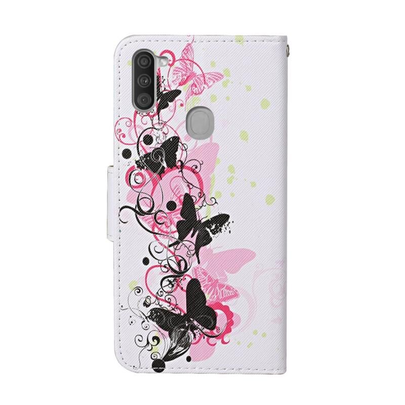 Θήκη Samsung Galaxy A11 Δερμάτινη Οριζόντια με σχέδιο πολύχρωμης ζωγραφικής, με βάση & θήκες για κάρτες & πορτοφόλι (Πεταλούδα)