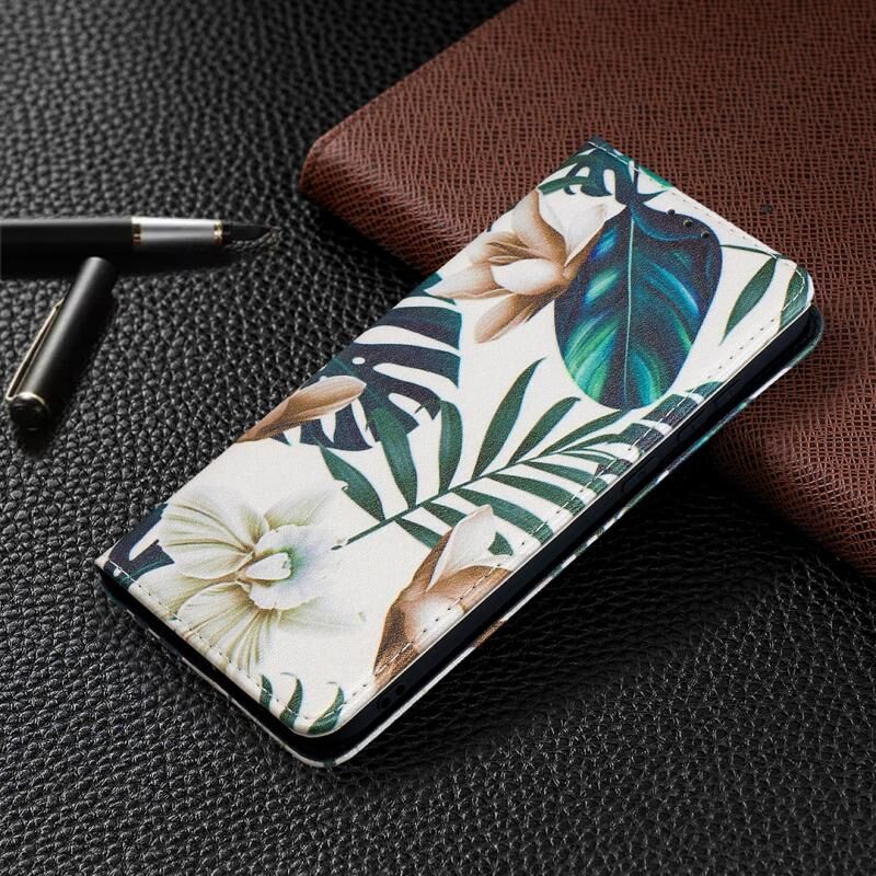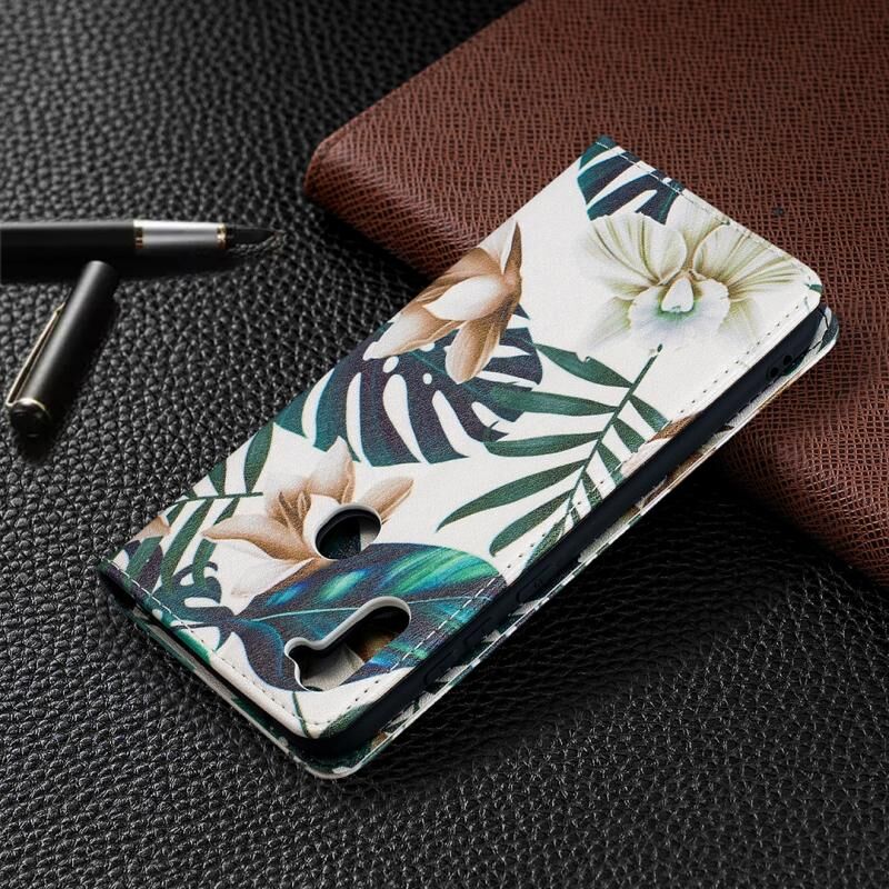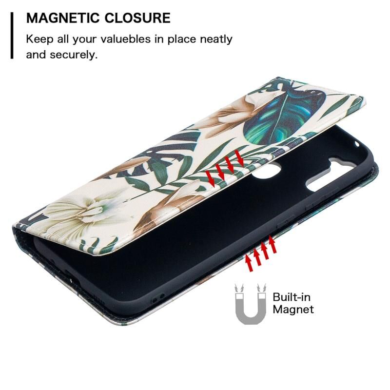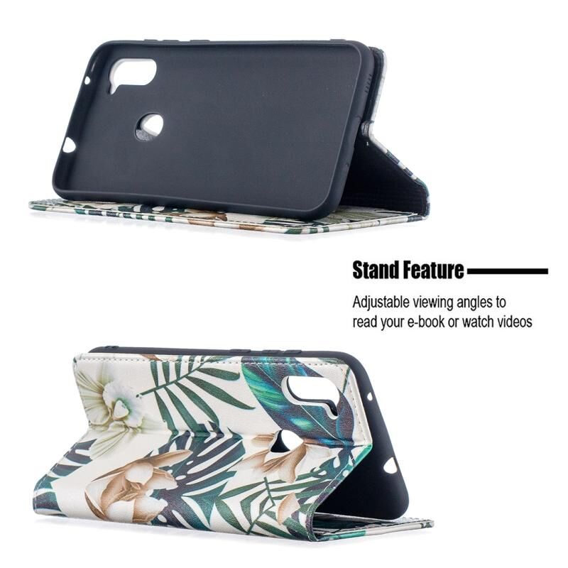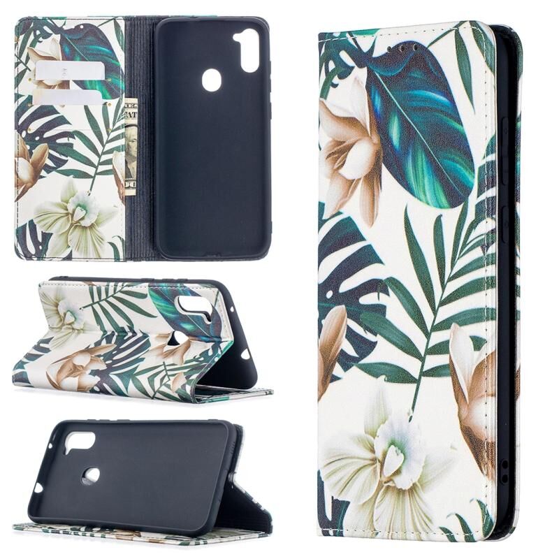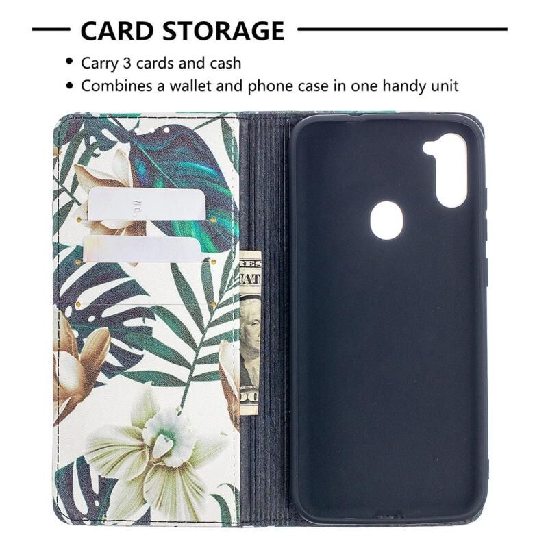 Θήκη Samsung Galaxy A11 με πολύχρωμο σχέδιο, αόρατο μαγνητικό, οριζόντιο flip από δερματίνη PU με βάση & θήκες για κάρτες & πορτοφόλι (Μπλε Φύλλο)