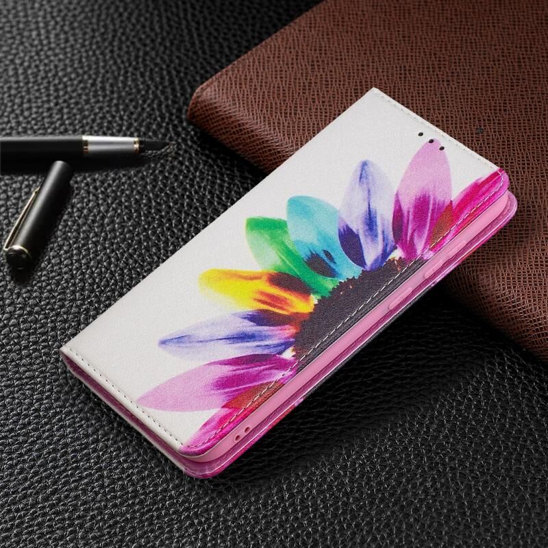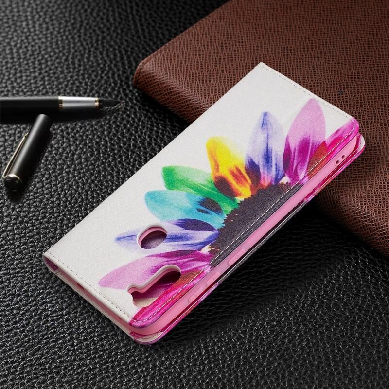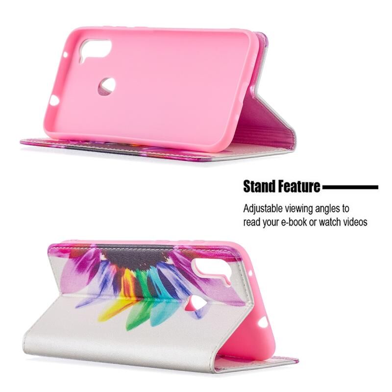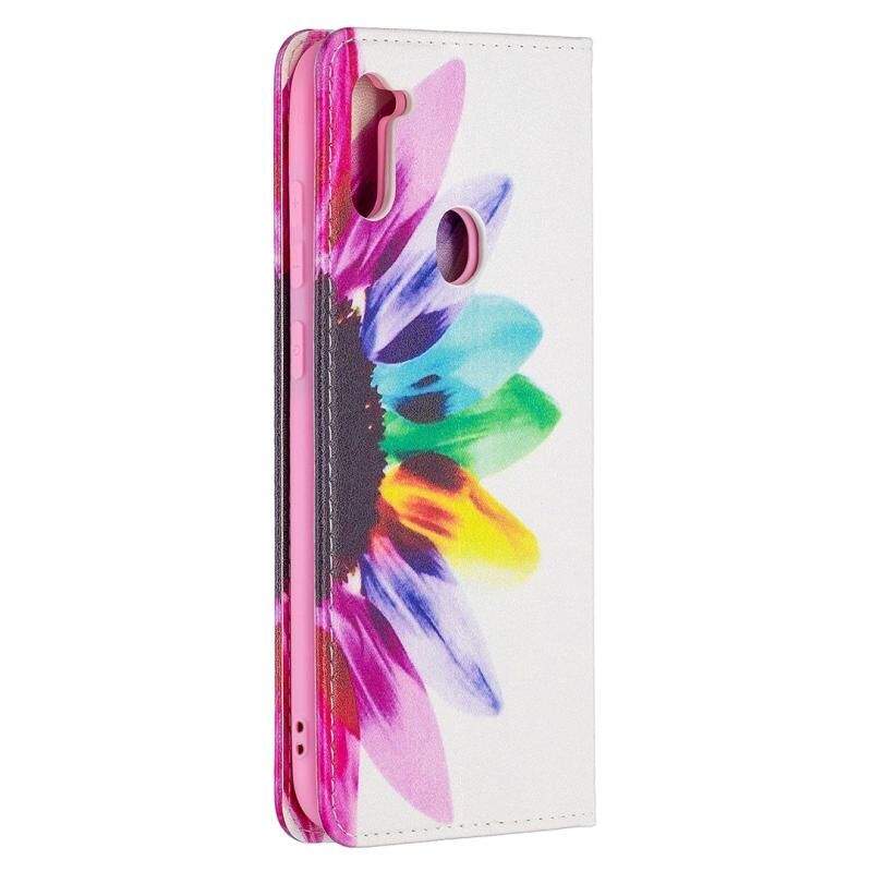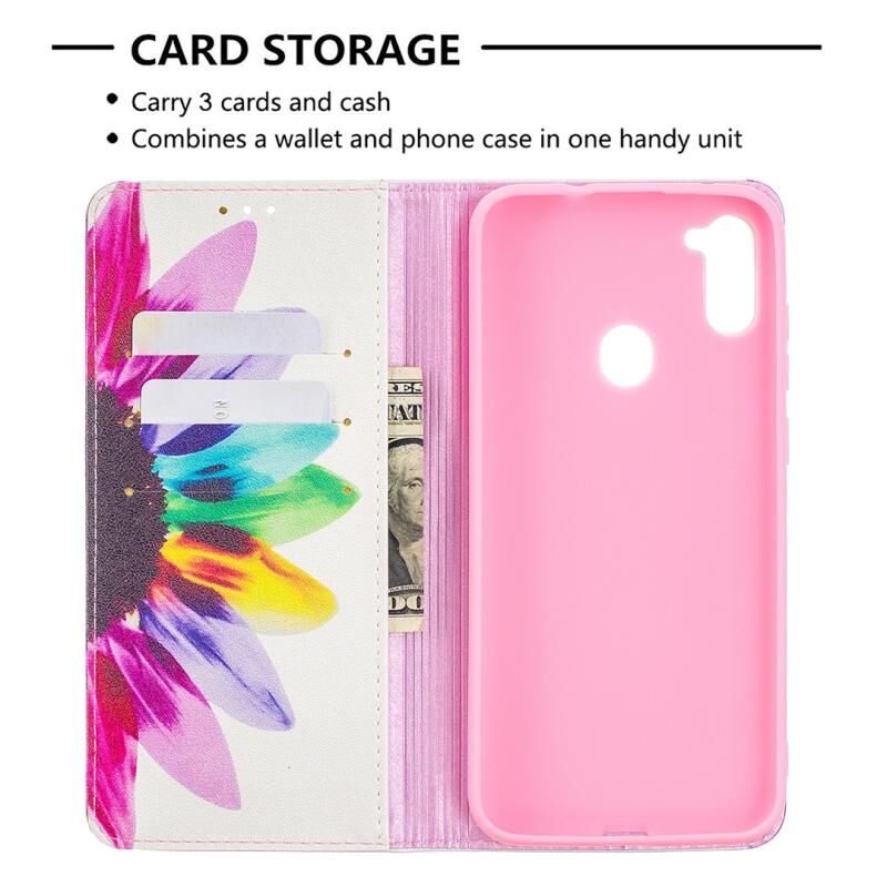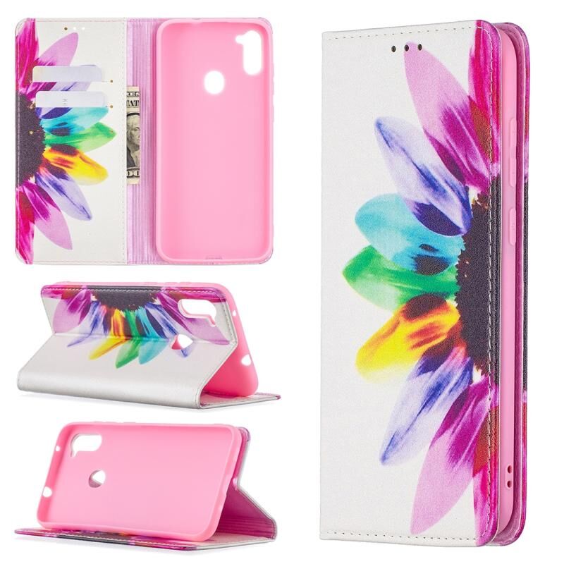 Θήκη Samsung Galaxy A11 με πολύχρωμο σχέδιο, αόρατο μαγνητικό, οριζόντιο flip από δερματίνη PU με βάση & θήκες για κάρτες & πορτοφόλι (Ηλίανθος)