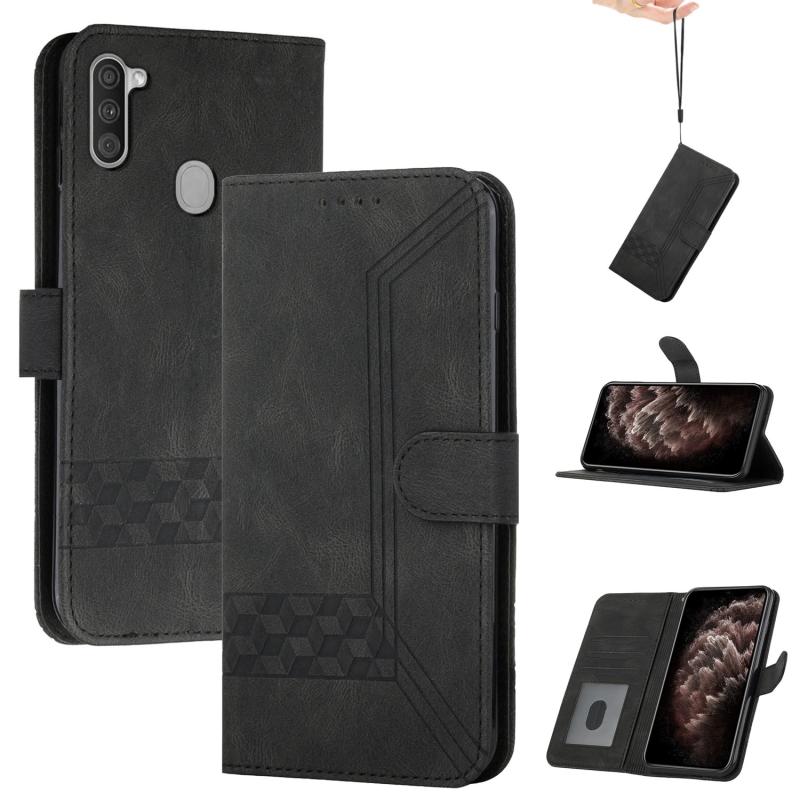 Θήκη τηλεφώνου Samsung Galaxy A11 Cubic Skin Feel Flip από δέρμα (Μαύρο)