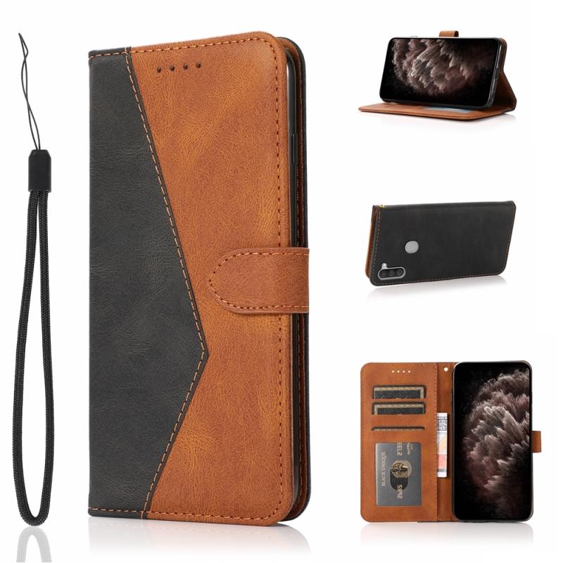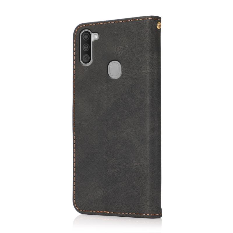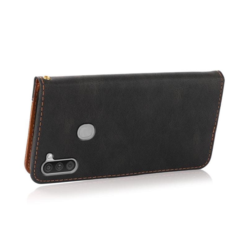 Θήκη τηλεφώνου Samsung Galaxy A11 Δερμάτινη με ραφές σε δύο χρώματα (Μαύρο Καφέ)