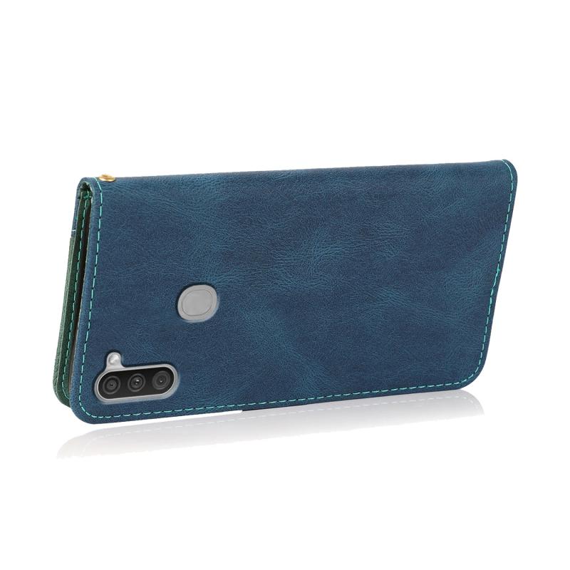 Θήκη τηλεφώνου Samsung Galaxy A11 Δερμάτινη με ραφές σε δύο χρώματα (Μαύρο Καφέ)