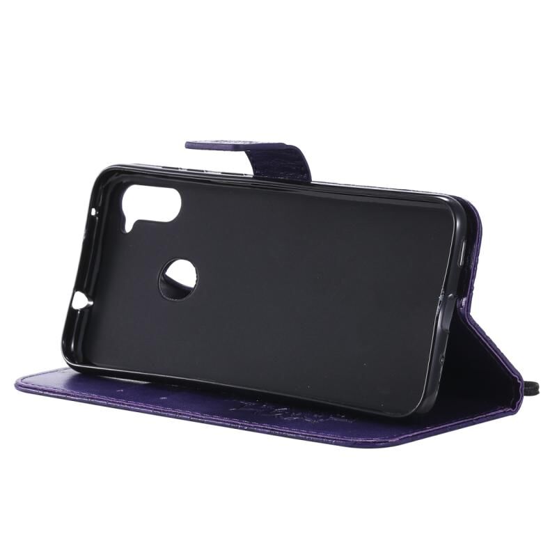 Για Samsung Galaxy A11 ανάγλυφο ηλιοτρόπιο μοτίβο οριζόντια Flip PU δέρμα υπόθεση με κάτοχο & υποδοχές για κάρτες & πορτοφόλι & κορδόνι (Μωβ)