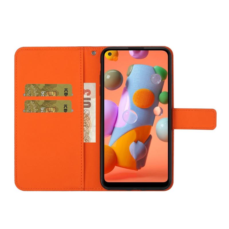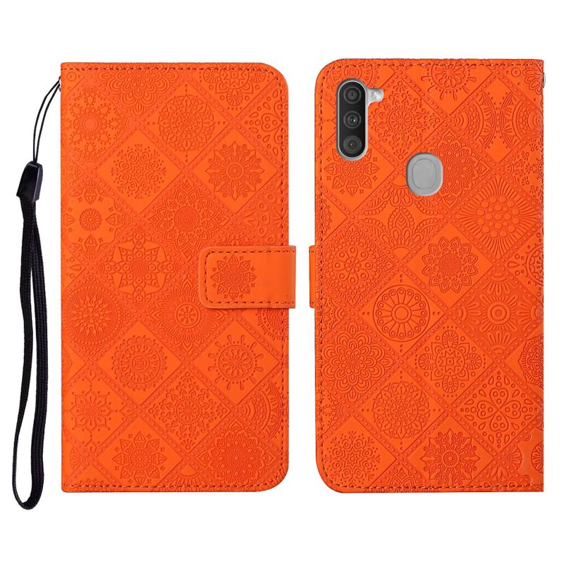 Θήκη Samsung Galaxy A11, Εθνοτικό Στυλ, ανάγλυφο σχέδιο, οριζόντια, δερμάτινη με βάση & θήκες καρτών & πορτοφόλι & κορδόνι (Πορτοκαλί)