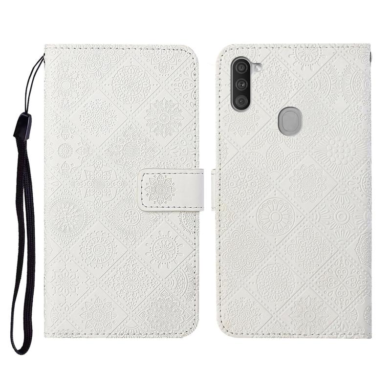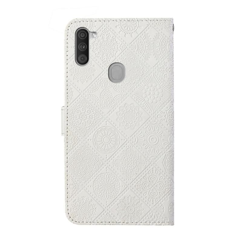 Θήκη Samsung Galaxy A11, Εθνοτικό Στυλ, ανάγλυφο σχέδιο, οριζόντια, δερμάτινη με βάση & θήκες καρτών & πορτοφόλι & κορδόνι (Λευκό)
