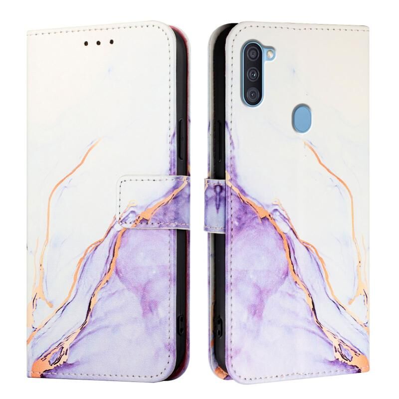 Θήκη τηλεφώνου Samsung Galaxy A11 EU PT003 με σχέδιο μάρμαρου, δερμάτινη, αναδιπλούμενη (Λευκό Μωβ)