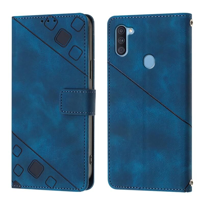 Για Samsung Galaxy A11 EU Skin Feel ανάγλυφη δερμάτινη θήκη τηλεφώνου (Μπλε)