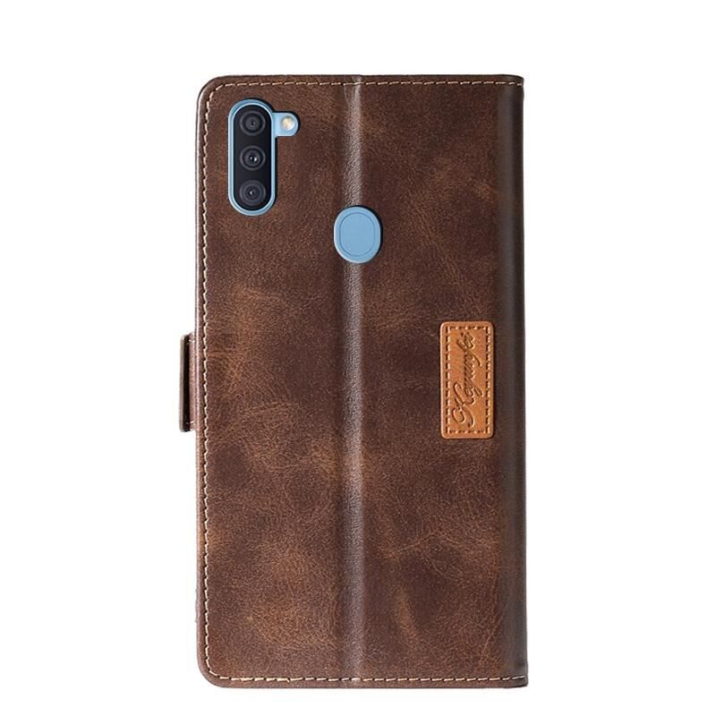 Για Samsung Galaxy A11 (έκδοση ΕΕ) Ρετρό υφή αντίθεση χρώμα πλευρά πόρπη οριζόντια Flip δερμάτινη θήκη με κάτοχο & υποδοχές για κάρτες & πορτοφόλι (Καφέ)