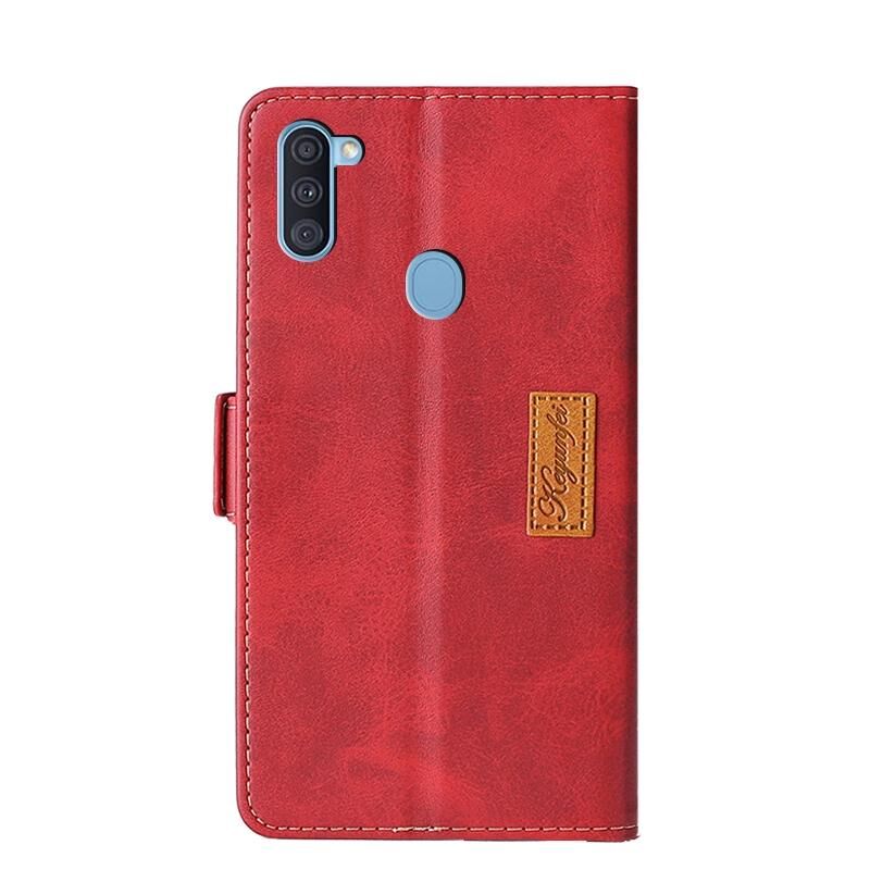 Για Samsung Galaxy A11 (έκδοση ΕΕ) Ρετρό υφή αντίθεση χρώμα πλευρά πόρπη οριζόντια Flip δερμάτινη θήκη με κάτοχο & υποδοχές για κάρτες & πορτοφόλι (Κόκκινο)