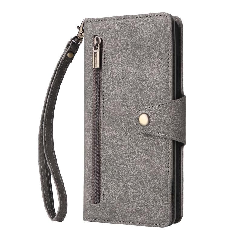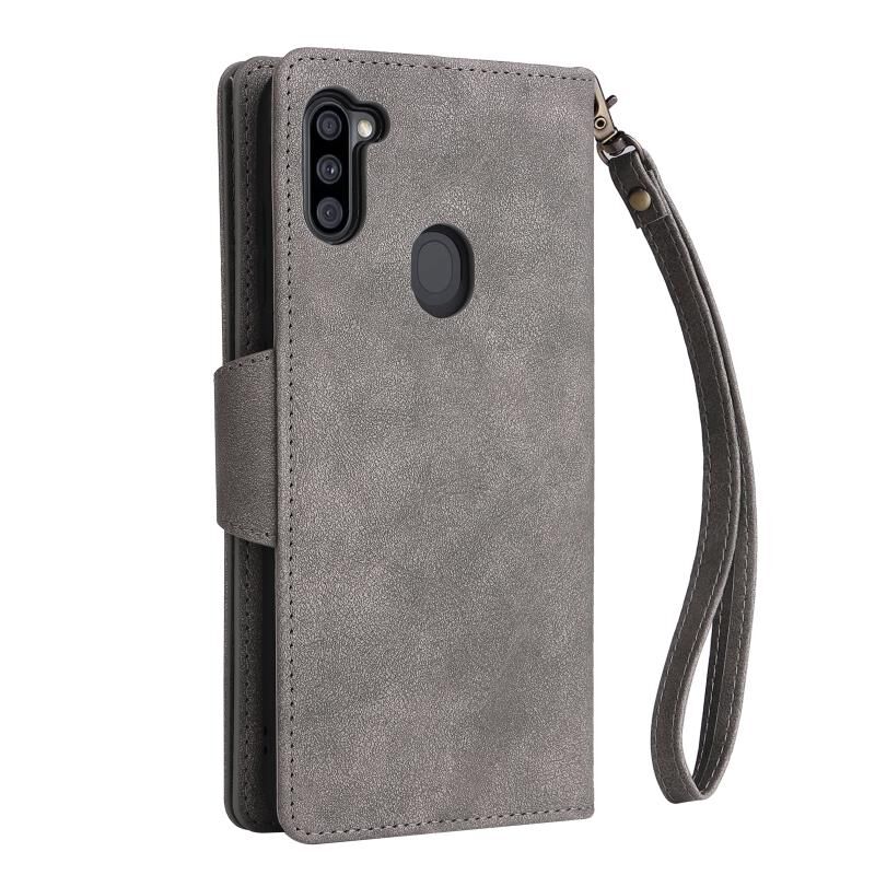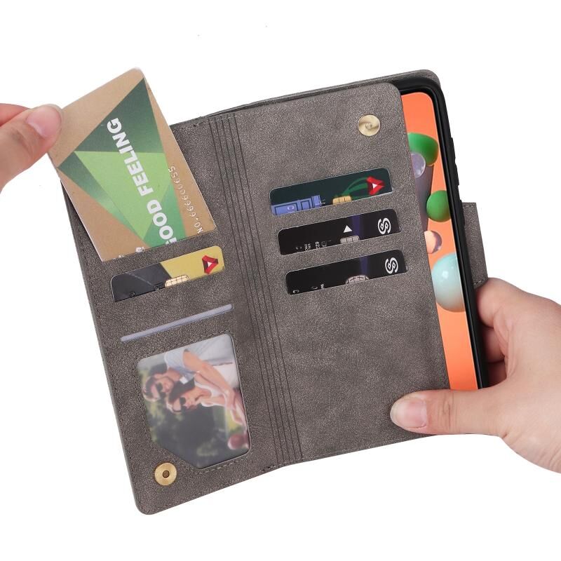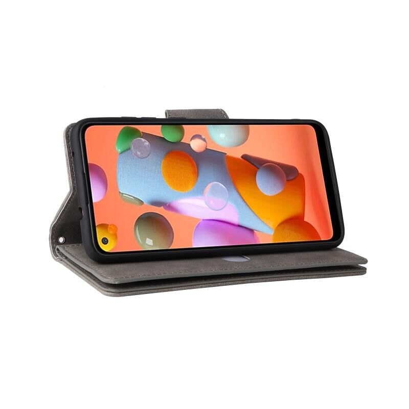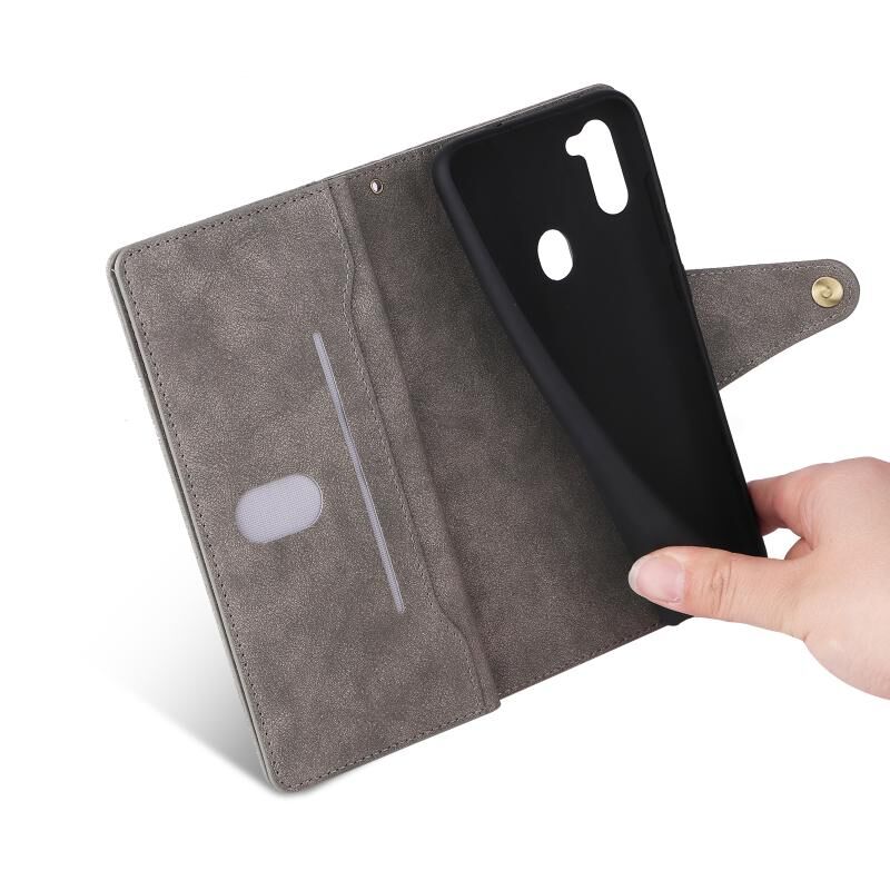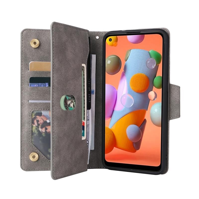 Για Samsung Galaxy A11 έκδοση ΕΕ Rivet πόρπη 9 κάρτες τρεις φορές δερμάτινη θήκη τηλεφώνου (γκρι)
