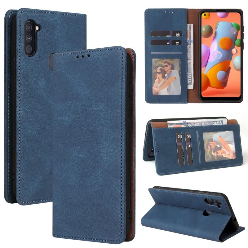 Για Samsung Galaxy A11 EU έκδοση Απλή αναρρόφηση Κλείσιμο οριζόντια Flip δερμάτινη θήκη με κάτοχο & υποδοχή για κάρτες & πορτοφόλι (μπλε)
