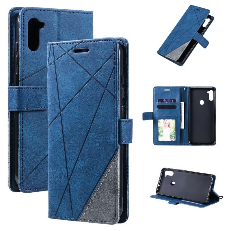 Για το Samsung Galaxy A11 (έκδοση ΕΕ) Skin Feel Splicing οριζόντια Flip δερμάτινη θήκη με θήκη & υποδοχές για κάρτες & πορτοφόλι & πλαίσιο φωτογραφιών (Μπλε)