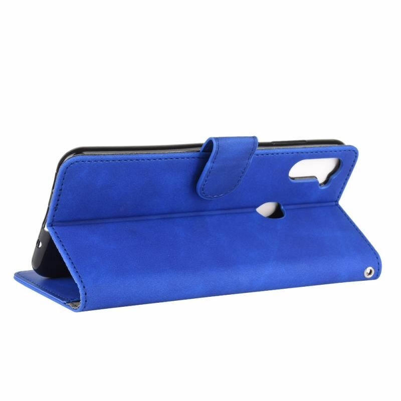 Για το Samsung Galaxy A11 (Ευρασιατική έκδοση) Αμιγές χρώμα δέρμα αίσθηση μαγνητική πόρπη οριζόντια Flip μοσχάρι υφή PU δέρμα υπόθεση με κάτοχο & υποδοχές για κάρτες & πορτοφόλι (Μπλε)
