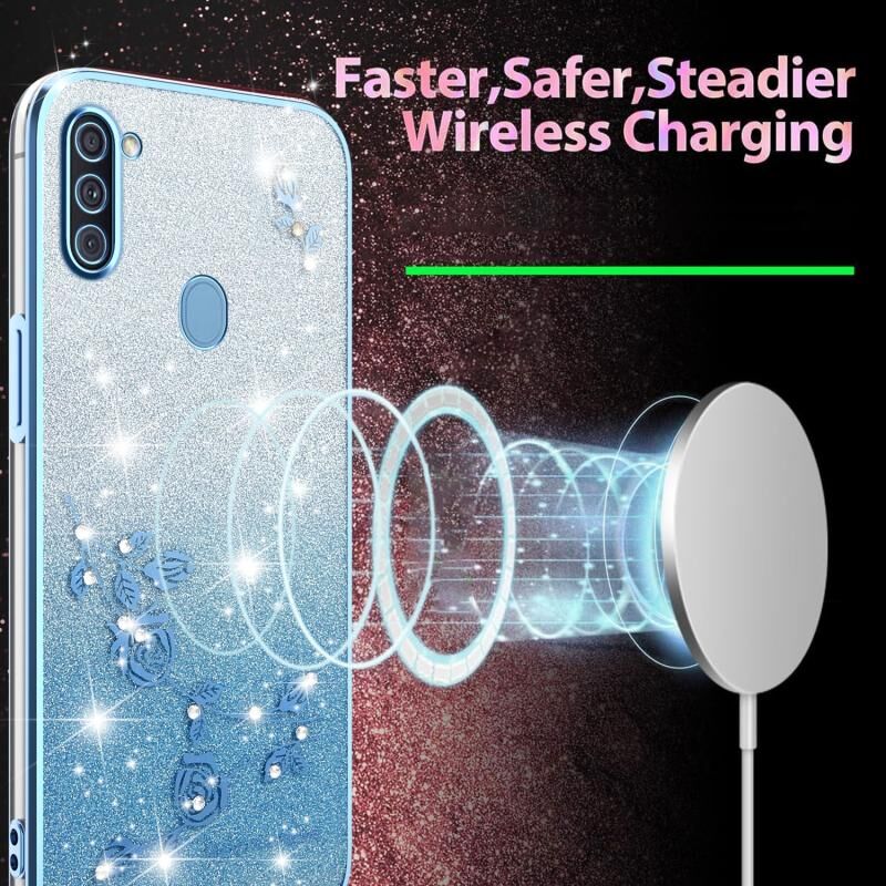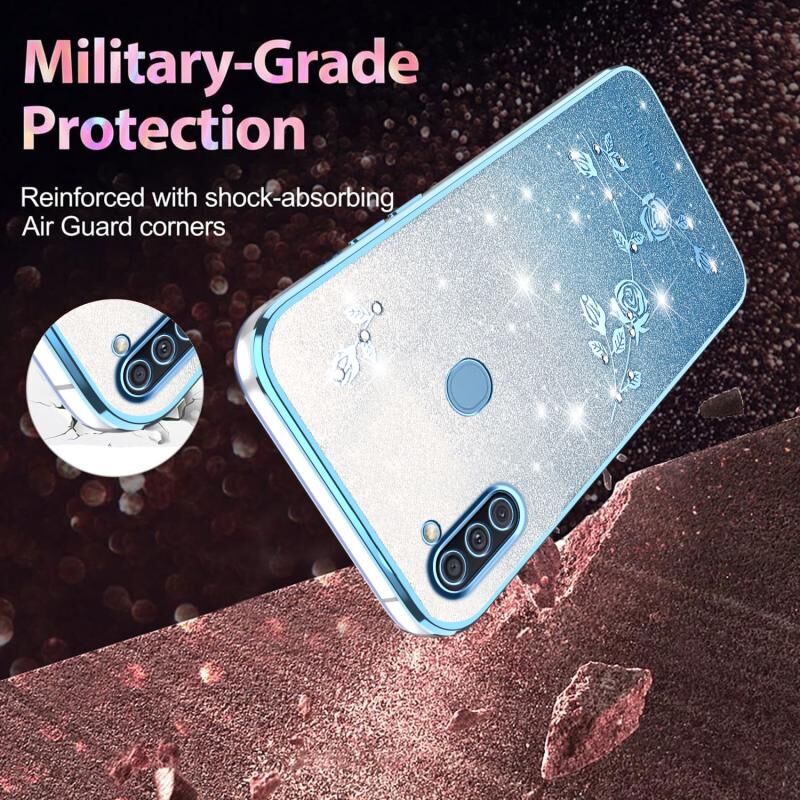 Θήκη τηλεφώνου για Samsung Galaxy A11 με διαβαθμισμένη λάμψη, λουλούδια και πλήρη κάλυψη (Μπλε)