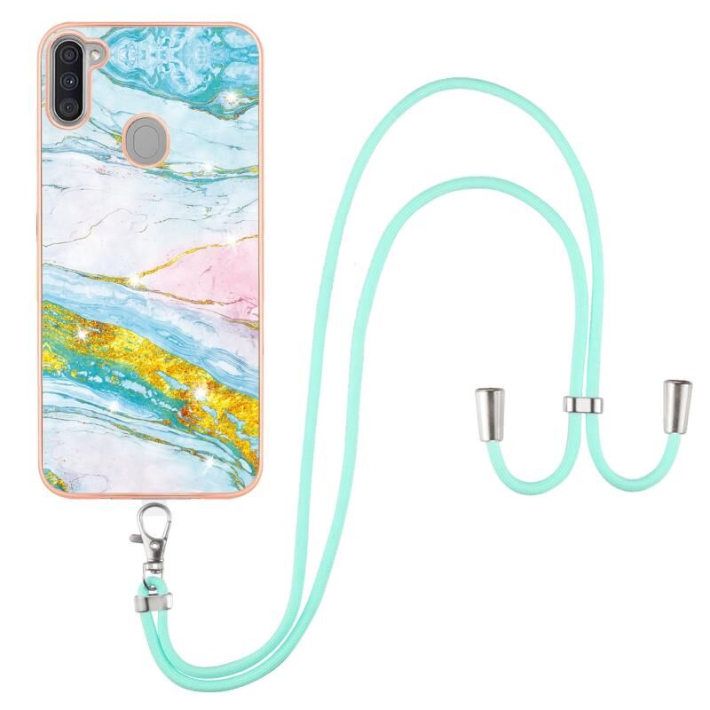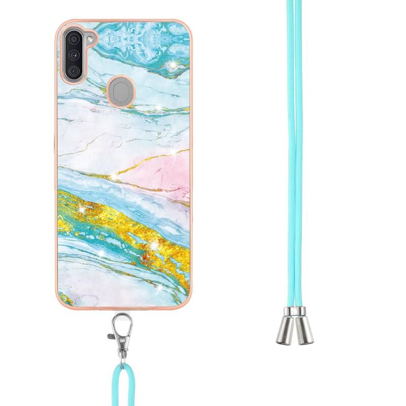 Θήκη για Samsung Galaxy A11 / M11 με Επικάλυψη Ηλεκτρολυτικής Μαρμάρου IMD TPU Αντικραδασμική με Λουρί Λαιμού (Μωβ 002)