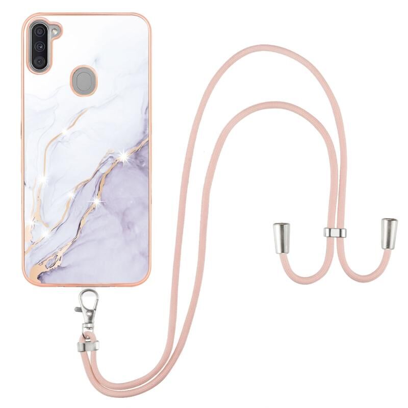 Θήκη για Samsung Galaxy A11 / M11 με Επικάλυψη Ηλεκτρολυτικής Μαρμάρου IMD TPU Αντικραδασμική με Λουρί Λαιμού (Μωβ 002)