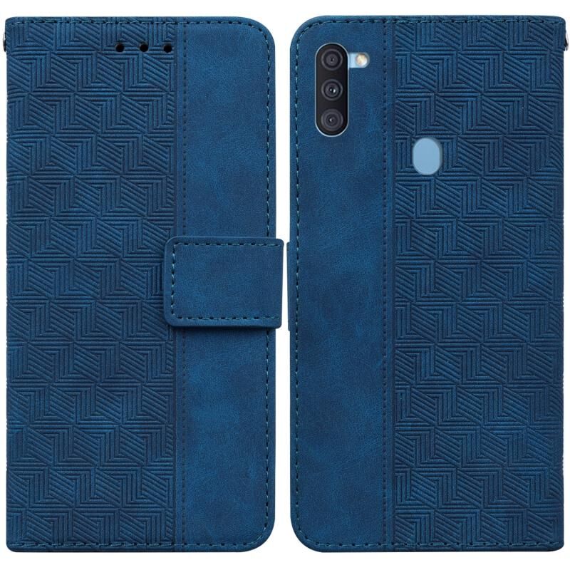 Για το Samsung Galaxy A11 / M11 έκδοση ΕΕ γεωμετρική ανάγλυφη δερμάτινη θήκη τηλεφώνου (μπλε)