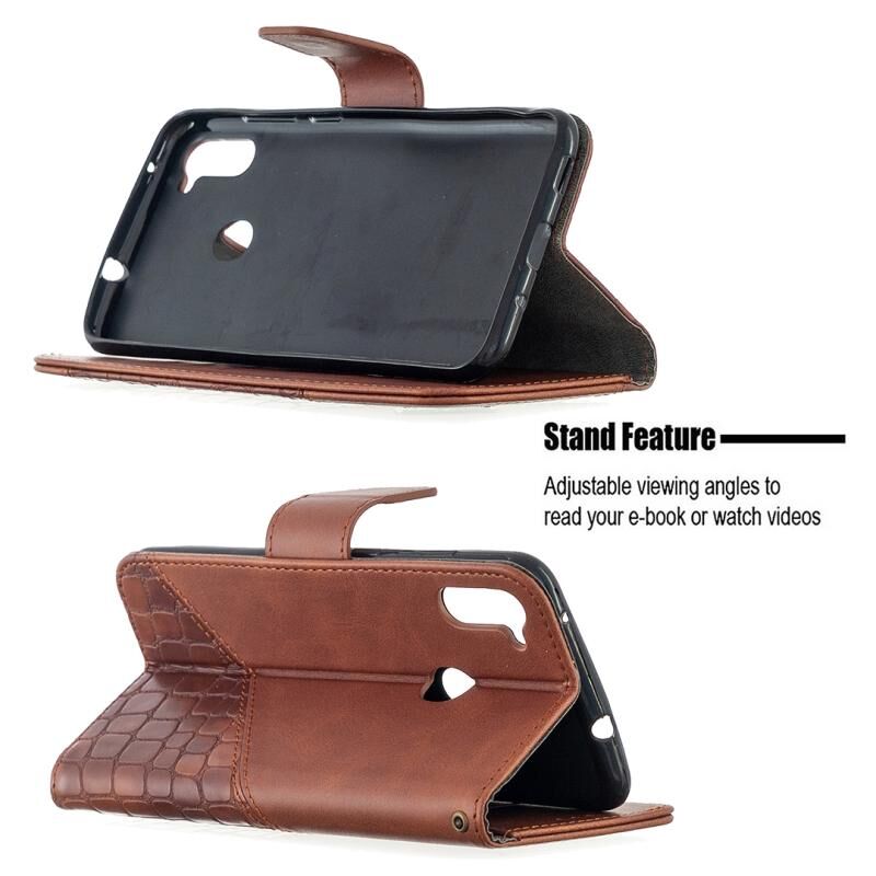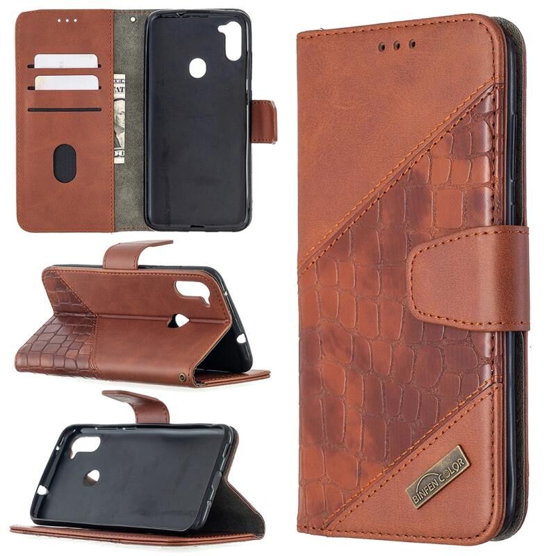 Θήκη Samsung Galaxy A11 / M11, Οριζόντια, Δερμάτινη PU με Υφή Κροκόδειλου, σε Αντίστοιχο Χρώμα, με Πορτοφόλι, Θήκη & Θήκες Καρτών (Καφέ)