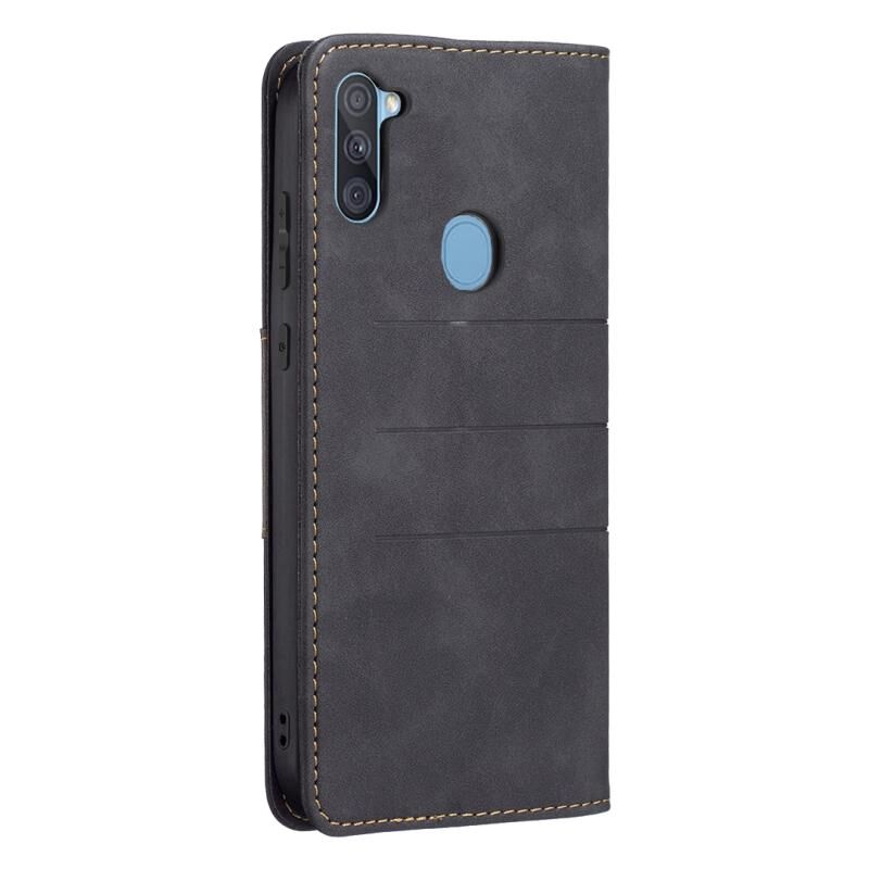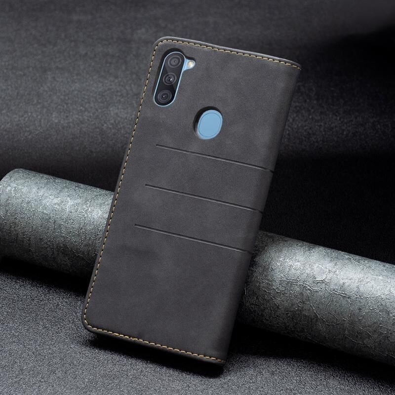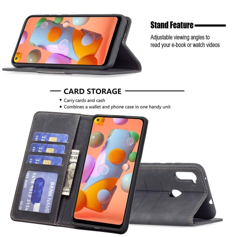 Για Samsung Galaxy A11 Μαγνητική θήκη τηλεφώνου από δέρμα (Μαύρο)