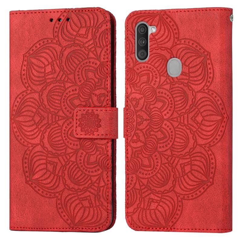 Για το Samsung Galaxy A11 Mandala ανάγλυφο Flip δερμάτινη θήκη τηλεφώνου (κόκκινο)