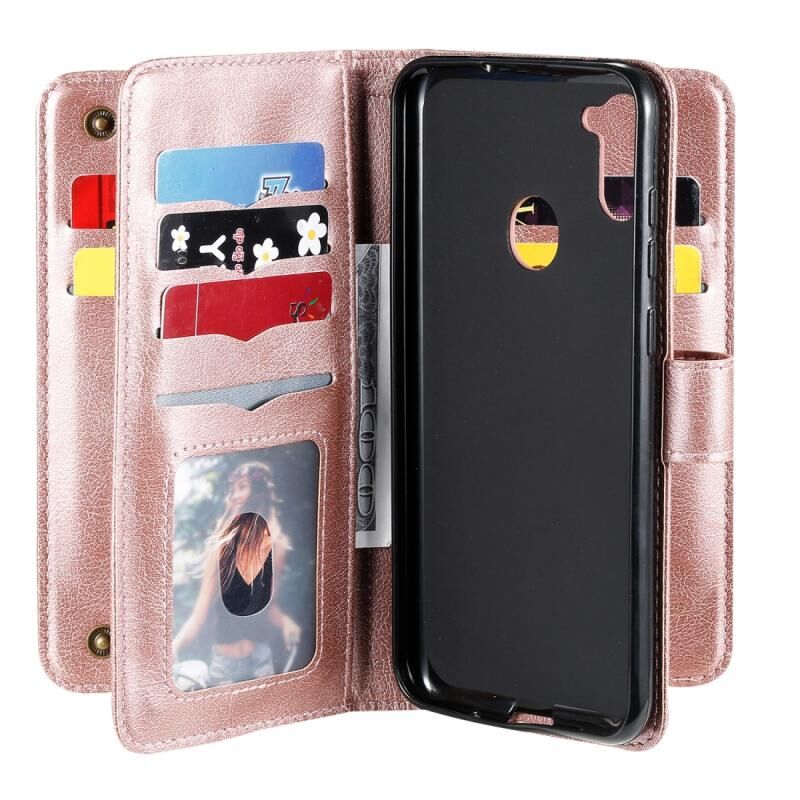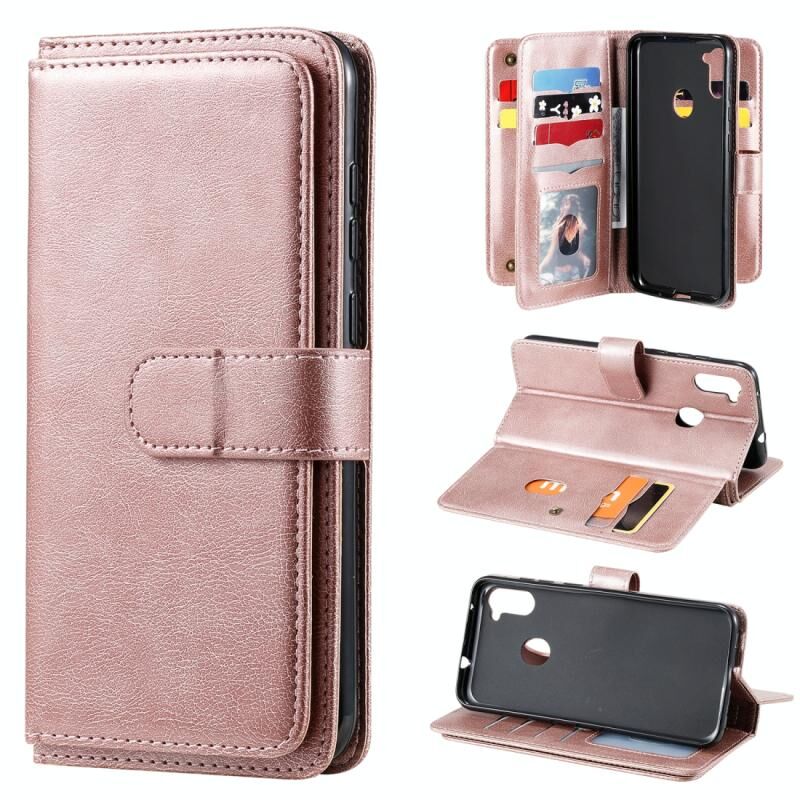Θήκη Samsung Galaxy A11 Πολυλειτουργική Μαγνητική Θήκη με Αγκράφα από Χαλκό, Οριζόντια, Μονόχρωμη Δερμάτινη με 10 Θήκες Καρτών & Πορτοφόλι & Στήριξη & Κορνίζα Φωτογραφιών (Ροζ χρυσός)