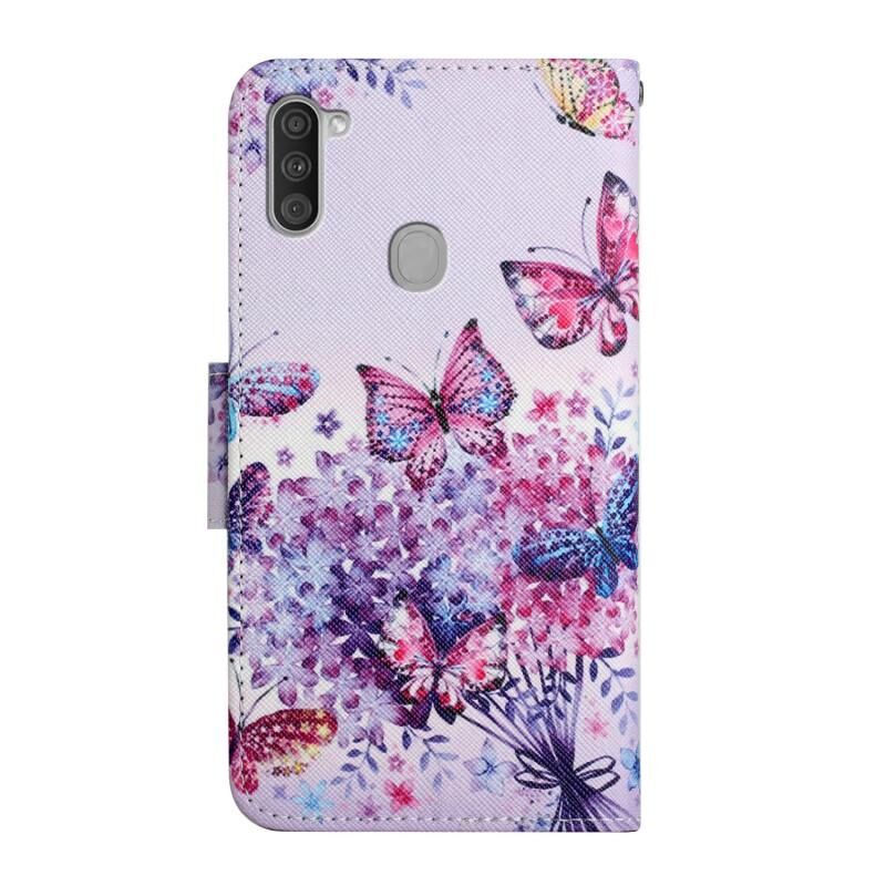 Θήκη Samsung Galaxy A11 από Δέρμα με Οριζόντιο Άνοιγμα, Βαμμένο Μοτίβο, με Θήκη & Υποδοχή Κάρτας & Πορτοφόλι (Κόκκινο Λουλούδι)