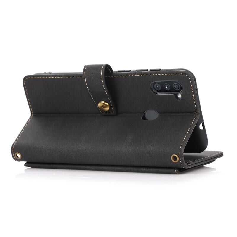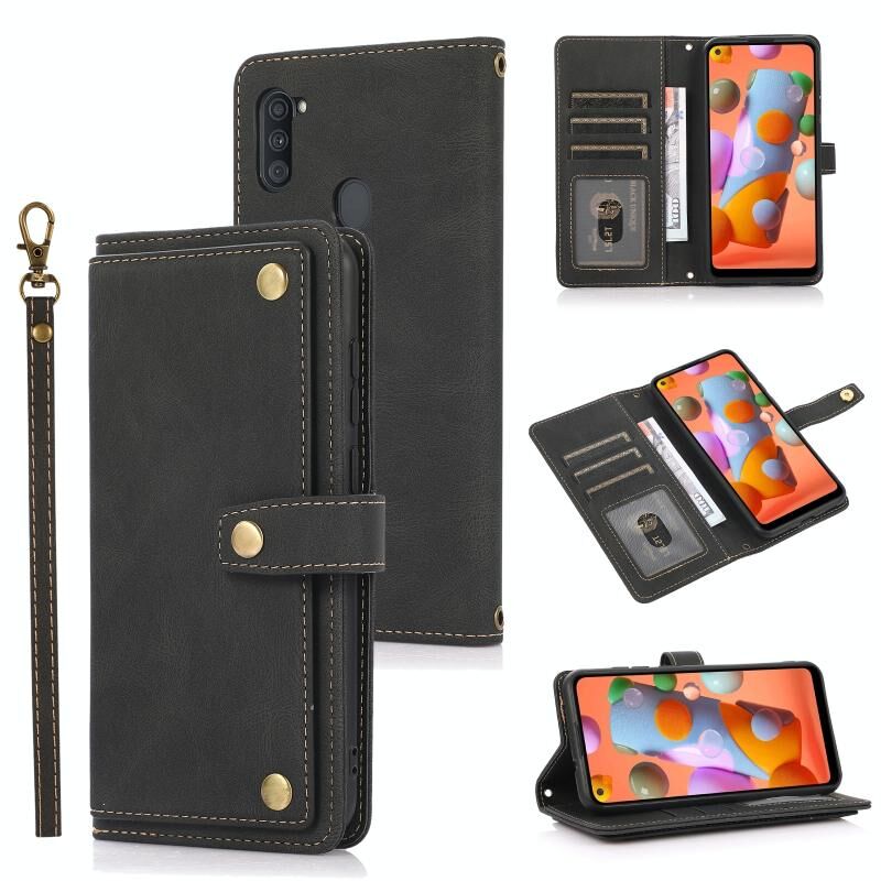 Για Samsung Galaxy A11 PU + TPU Οριζόντια θήκη από δέρμα με θήκη για κάρτες, υποδοχή για κάρτες, πορτοφόλι και κορδόνι (Μαύρο)