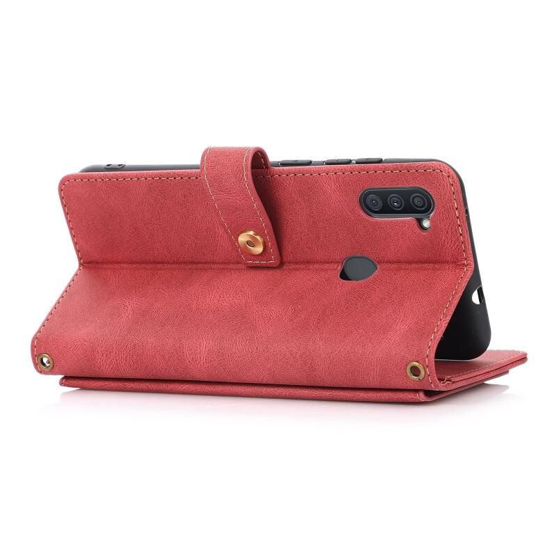 Για Samsung Galaxy A11 PU + TPU Οριζόντια Flip δερμάτινη θήκη με θήκη & υποδοχή για κάρτες & πορτοφόλι & κορδόνι (κόκκινο κρασί)