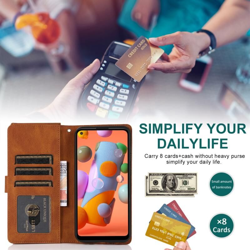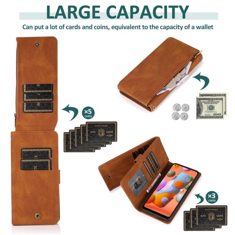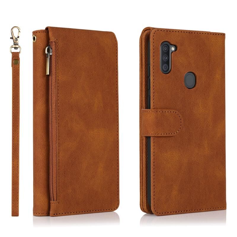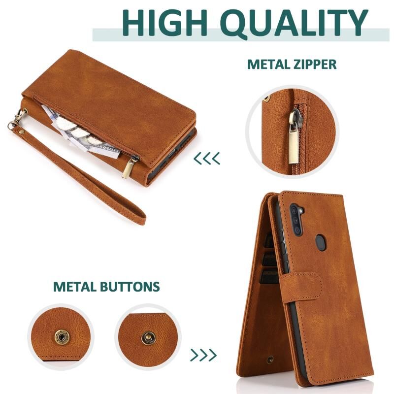 Για Samsung Galaxy A11 Skin-feel Crazy Horse υφή φερμουάρ τσάντα πορτοφόλι οριζόντια Flip δερμάτινη θήκη με κάτοχο & υποδοχές για κάρτες & πορτοφόλι & κορδόνι (καφέ)